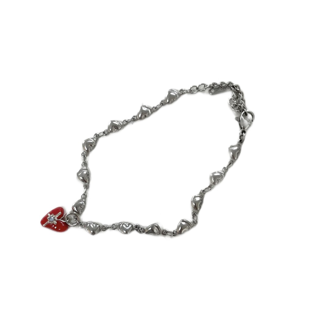 [viviflo] heart chain bracelet_red / 하트체인 팔찌_레드