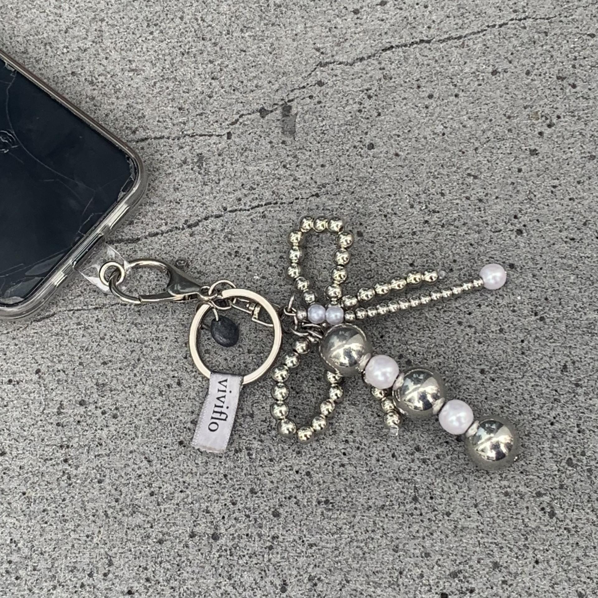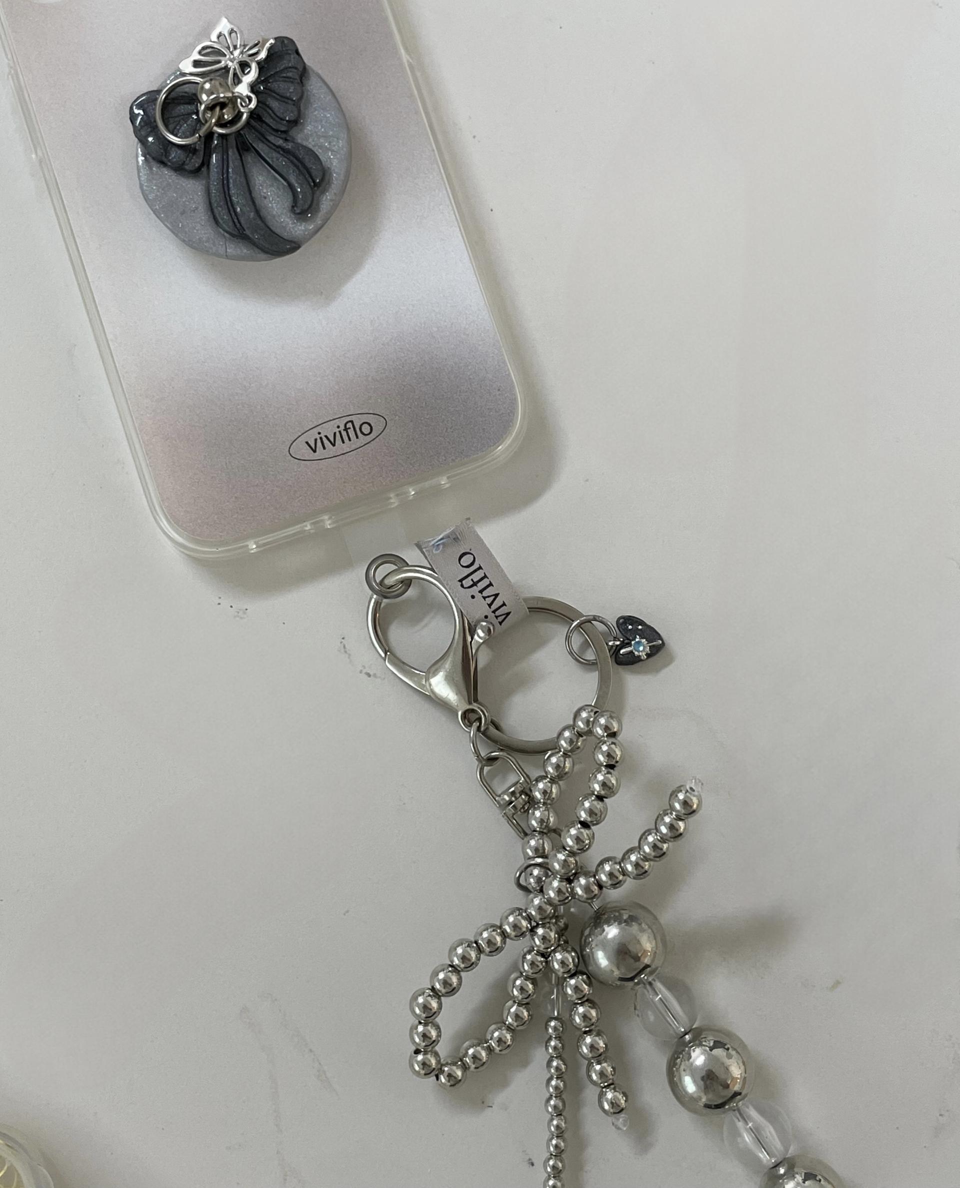 [viviflo] signature keyring silver ribbon_grayheart / 시그니처키링_실버리본_그레이하트 (핸드폰하단고리추가가능)