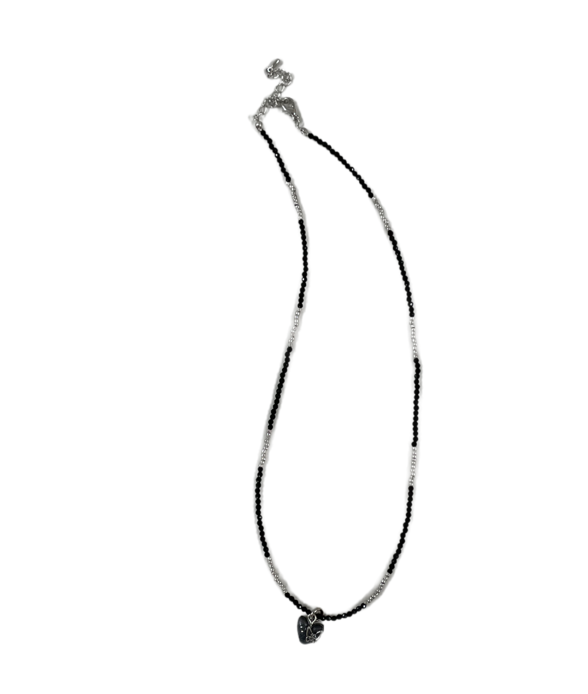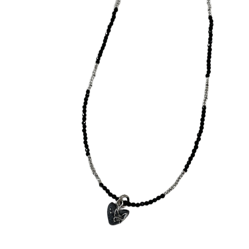 [viviflo] heart black silver necklace / 하트실버블랙비즈목걸이