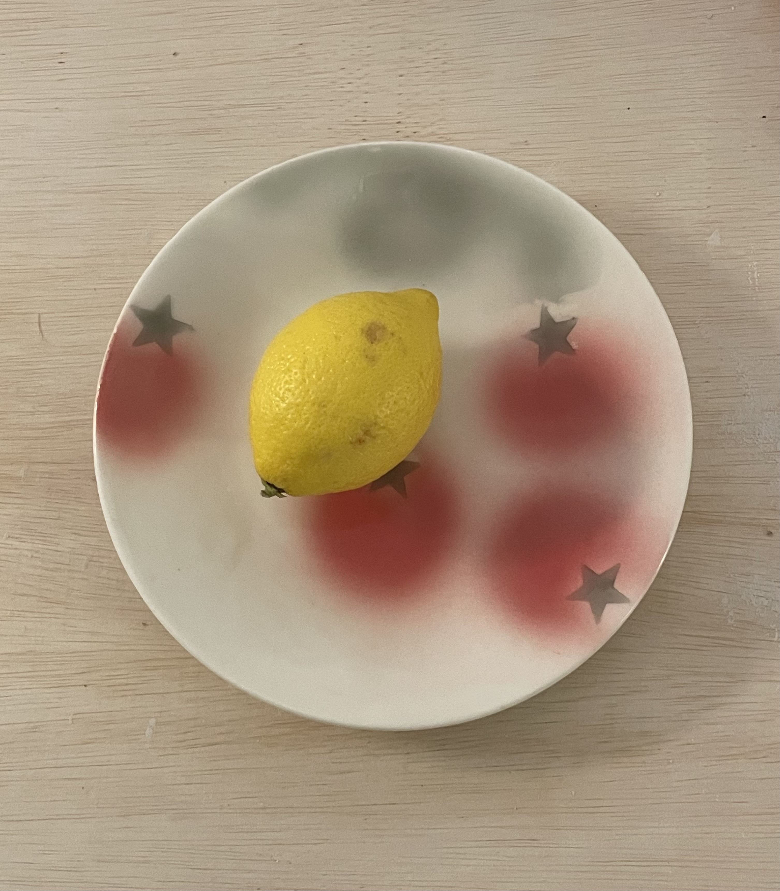 전체적으로 노랑빛 아이보리 바탕접시에