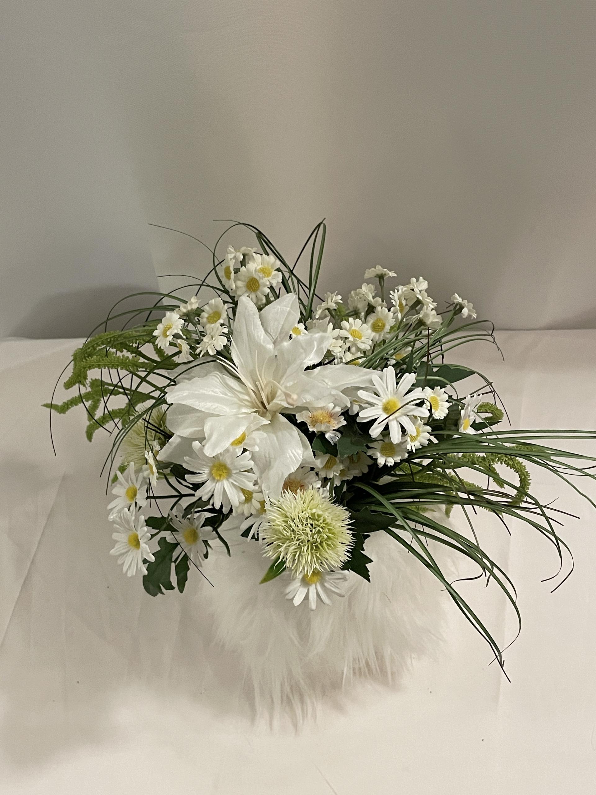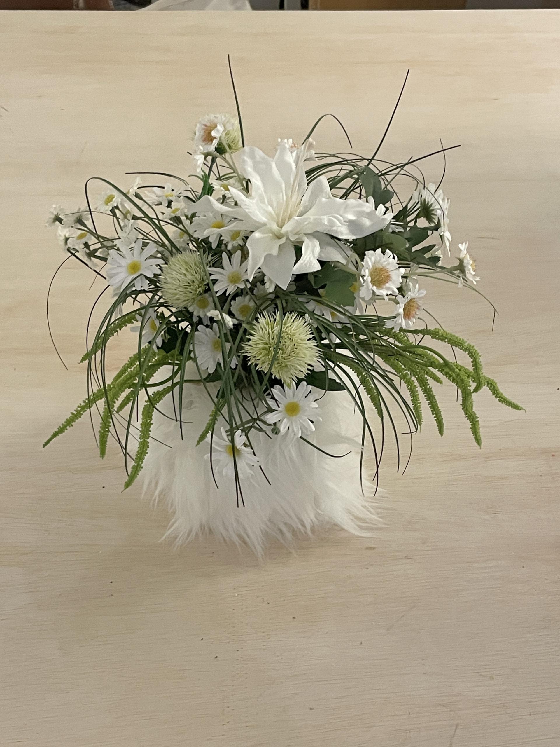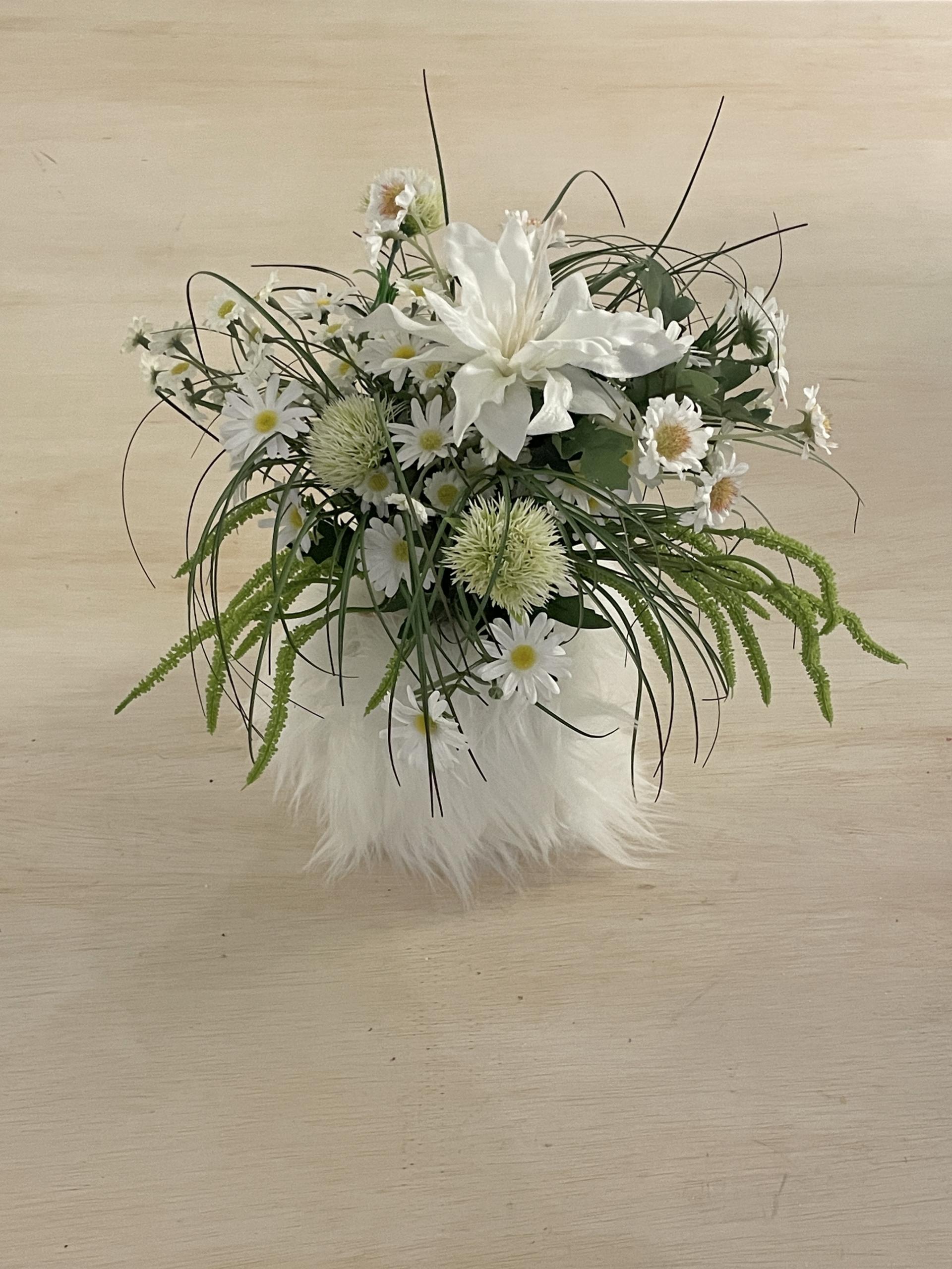 낮은 화병에 어울리도록 구성한 04 조화세트는
