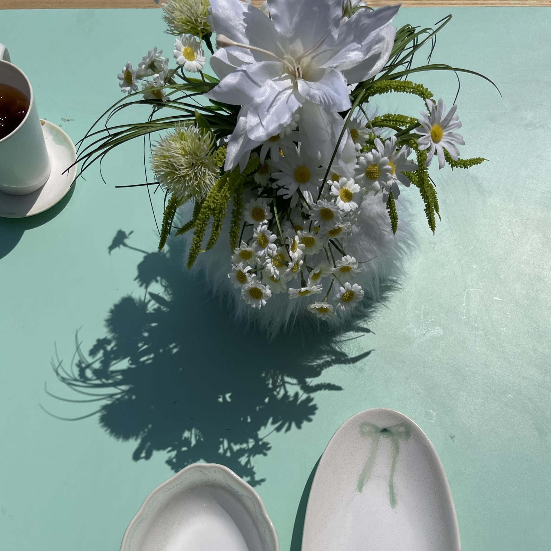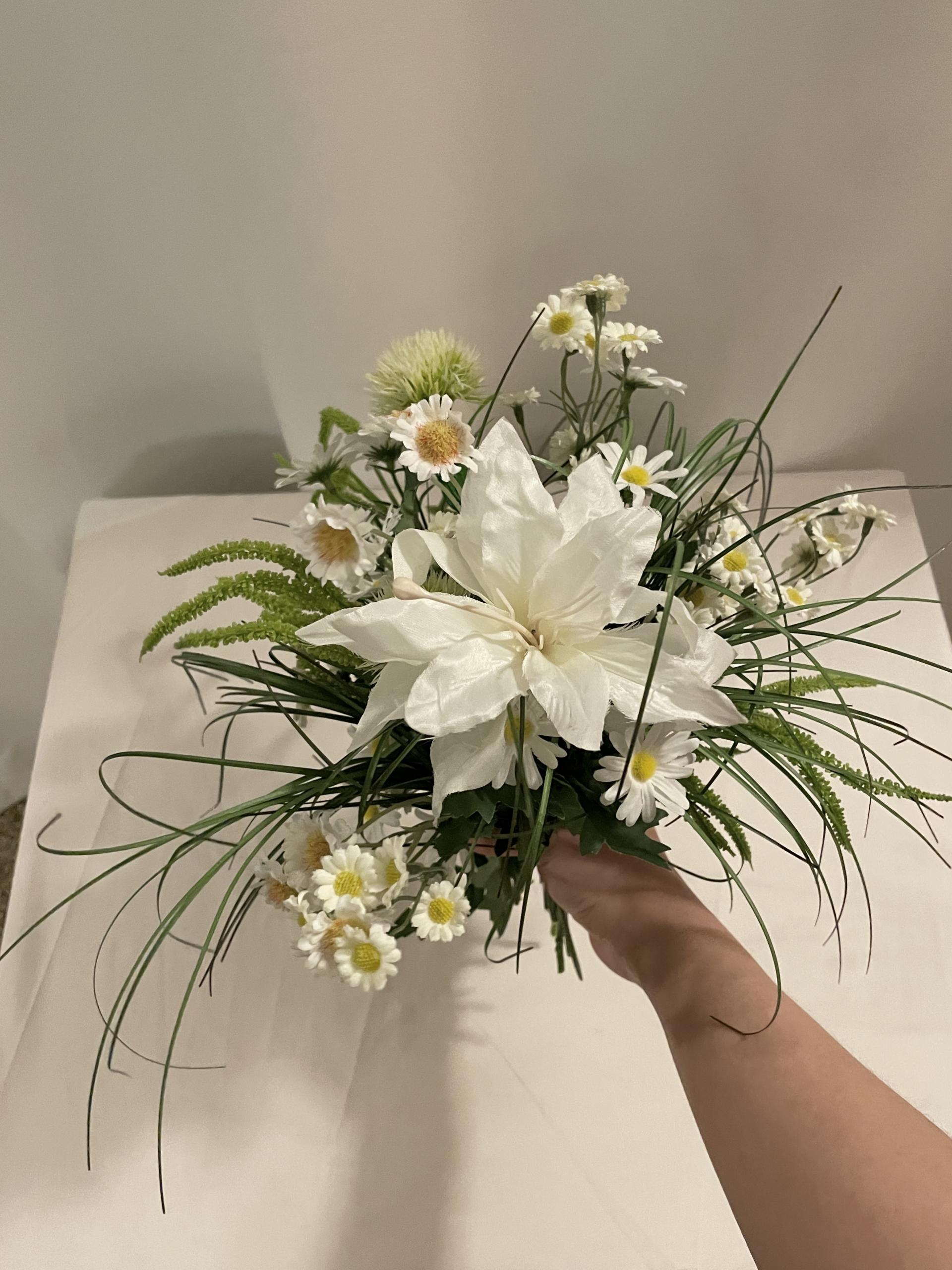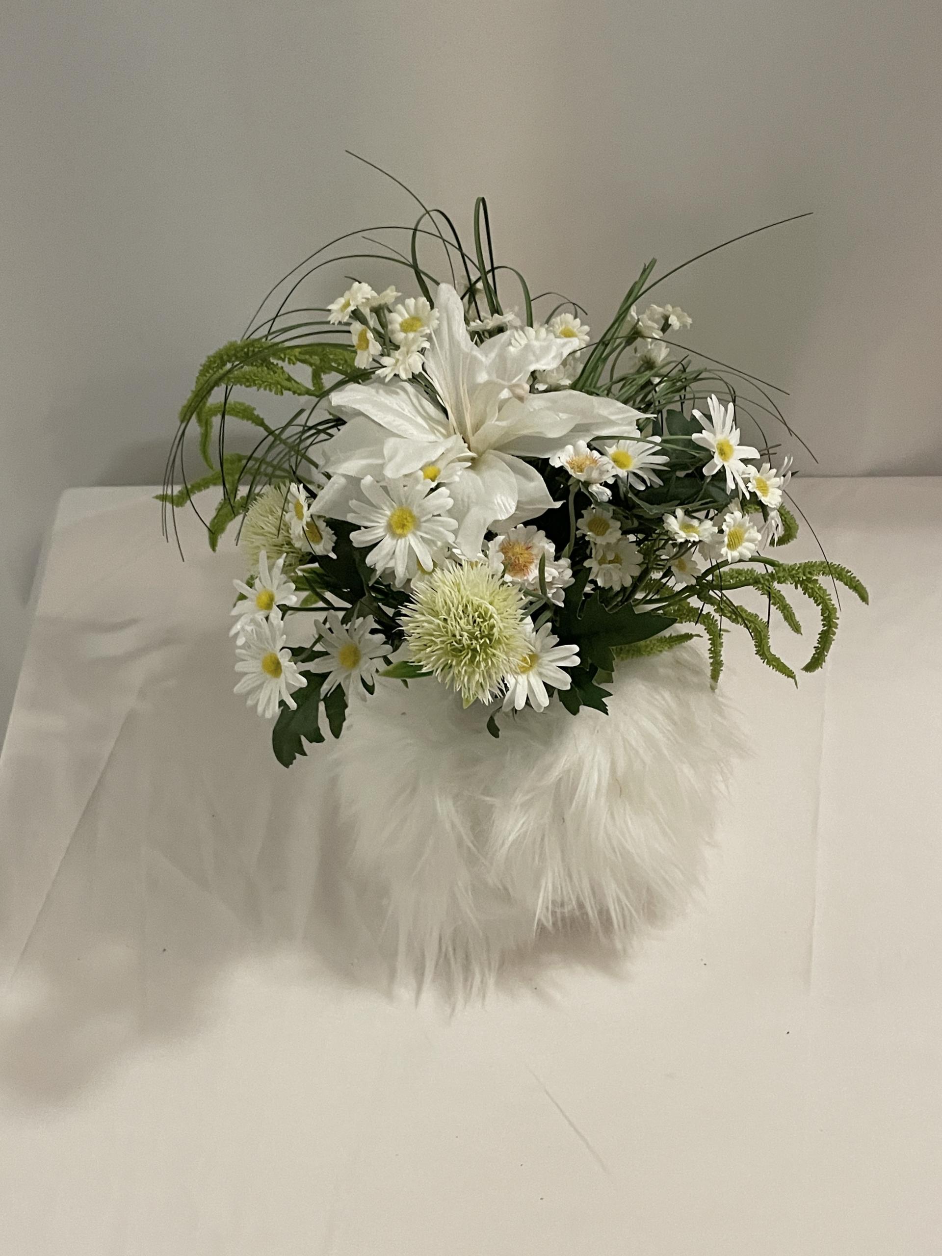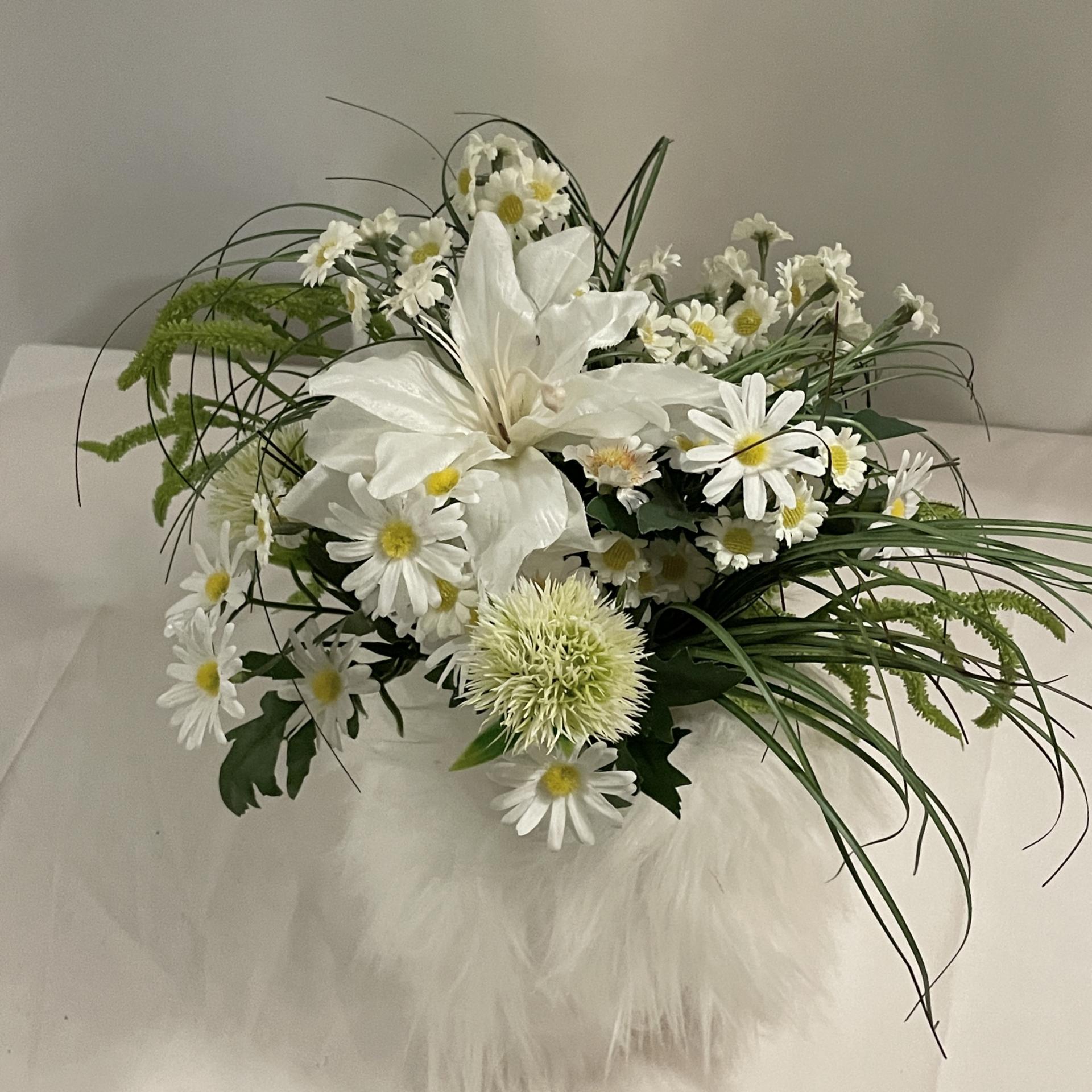 낮은 화병에 어울리도록 구성한 04 조화세트는
