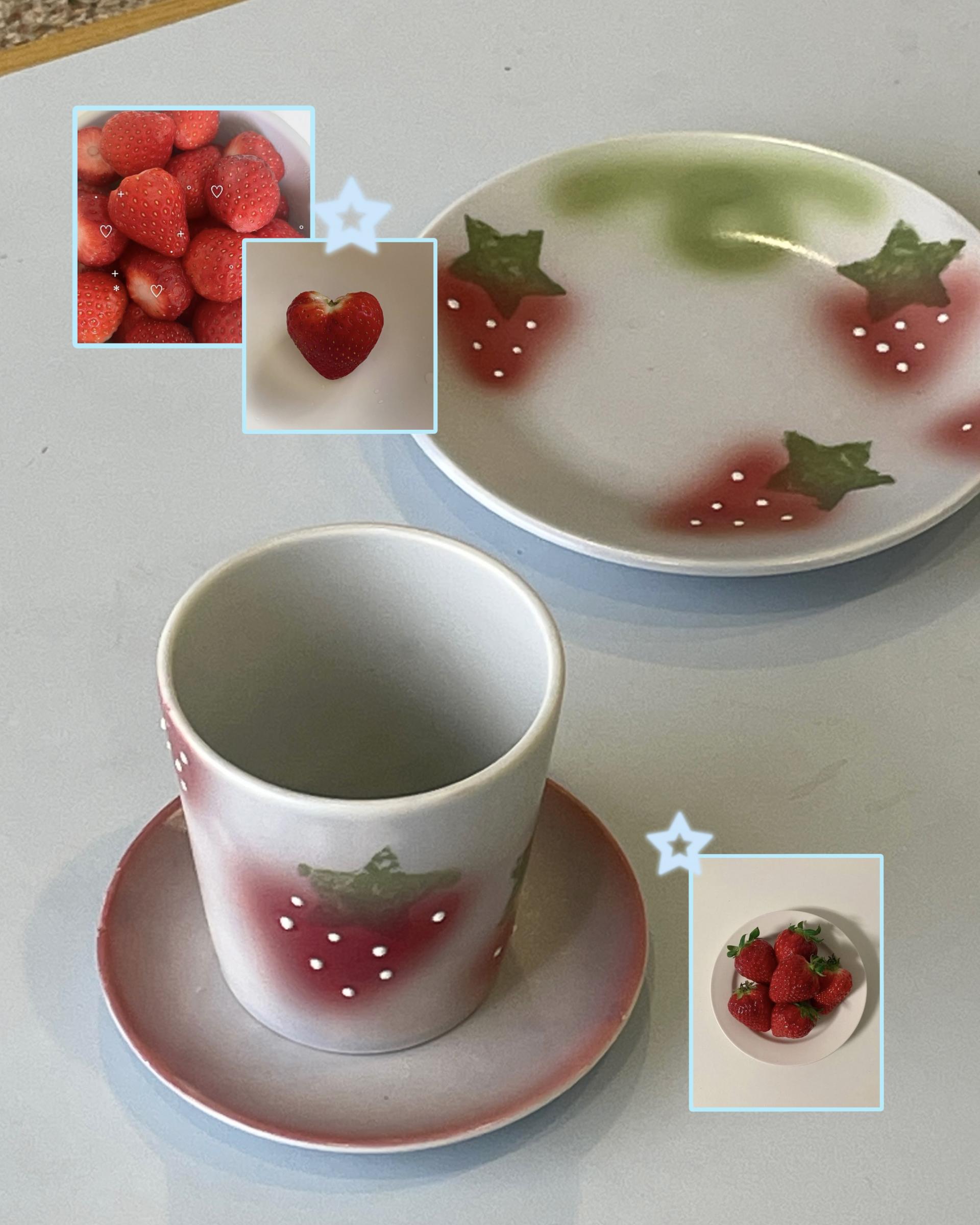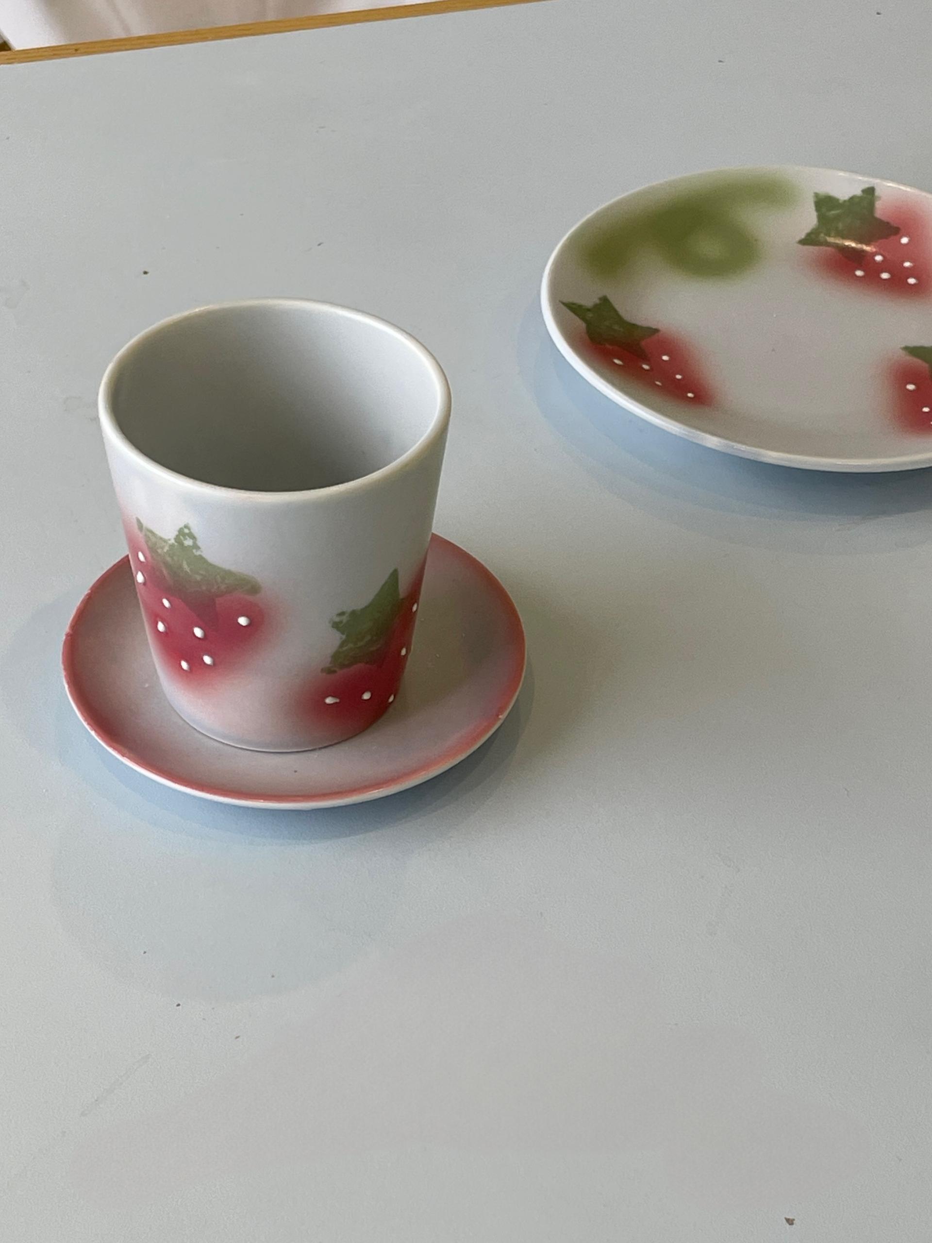 딸기가 그려진 물컵입니다
