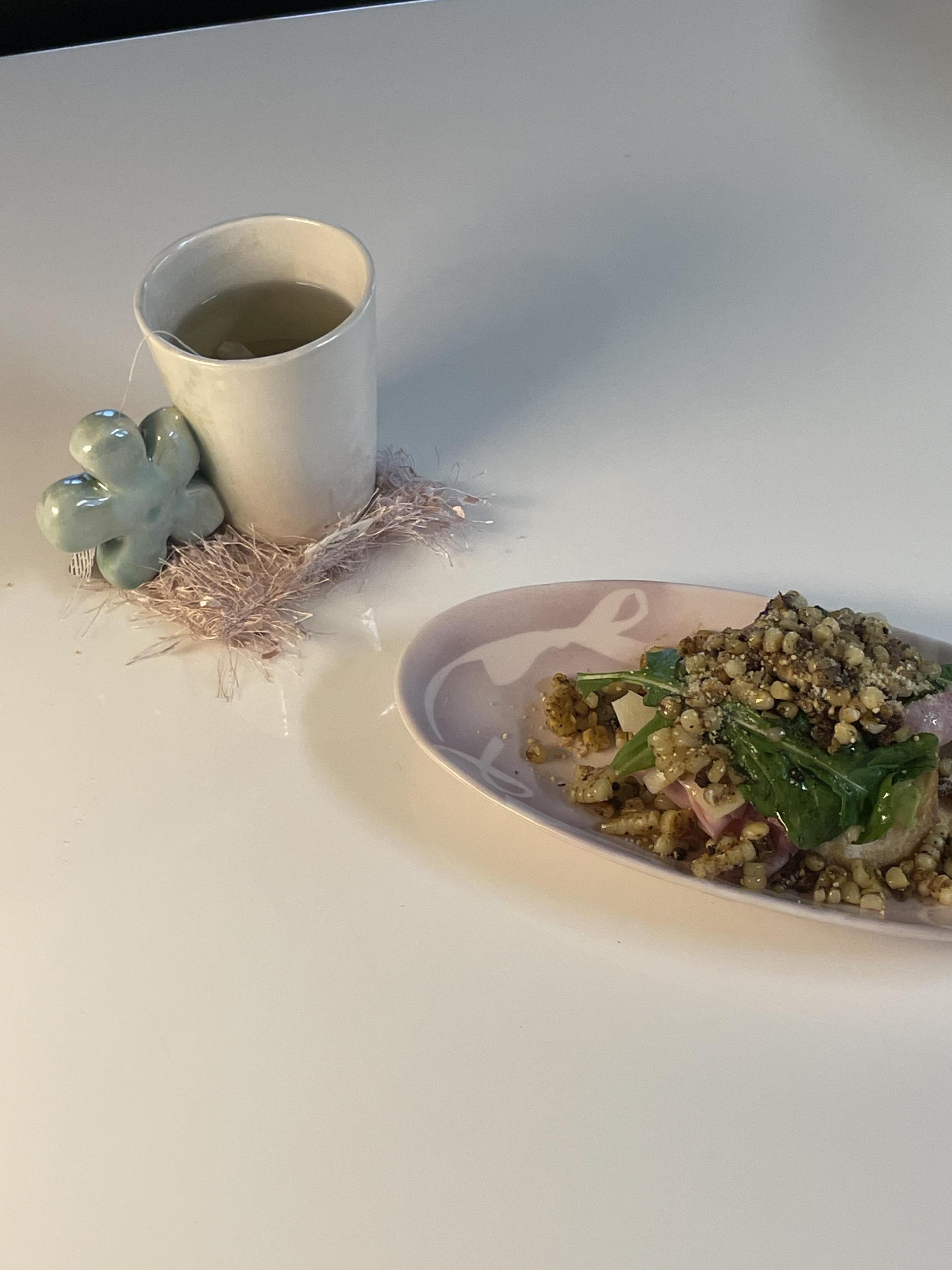 유약의 흐름이나 흙 내 철성분으로 인한 까만 반점 , 미새한 돌기 등이 느껴질 수 있으니 불량제품은 아니므로 교환이 어렵습니다