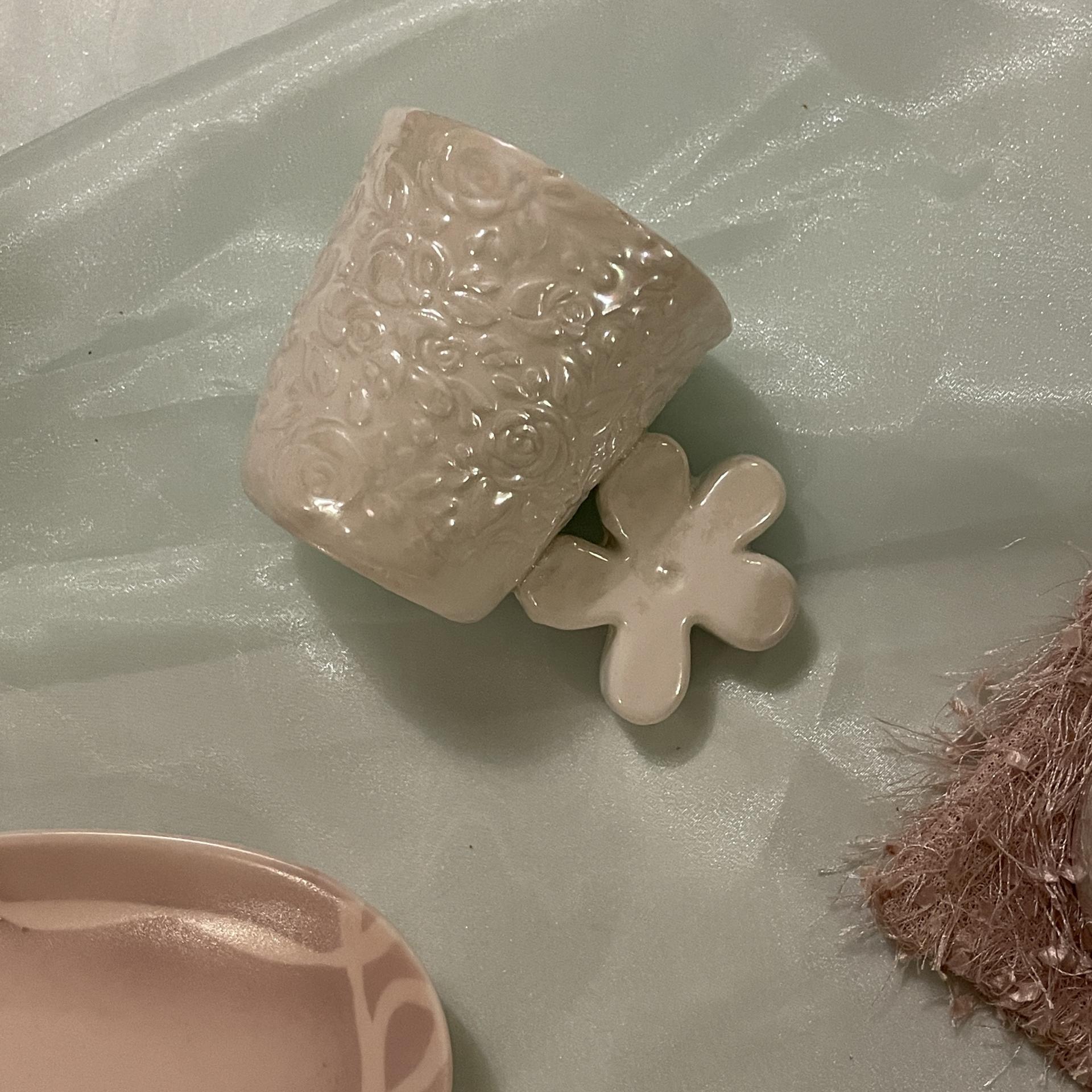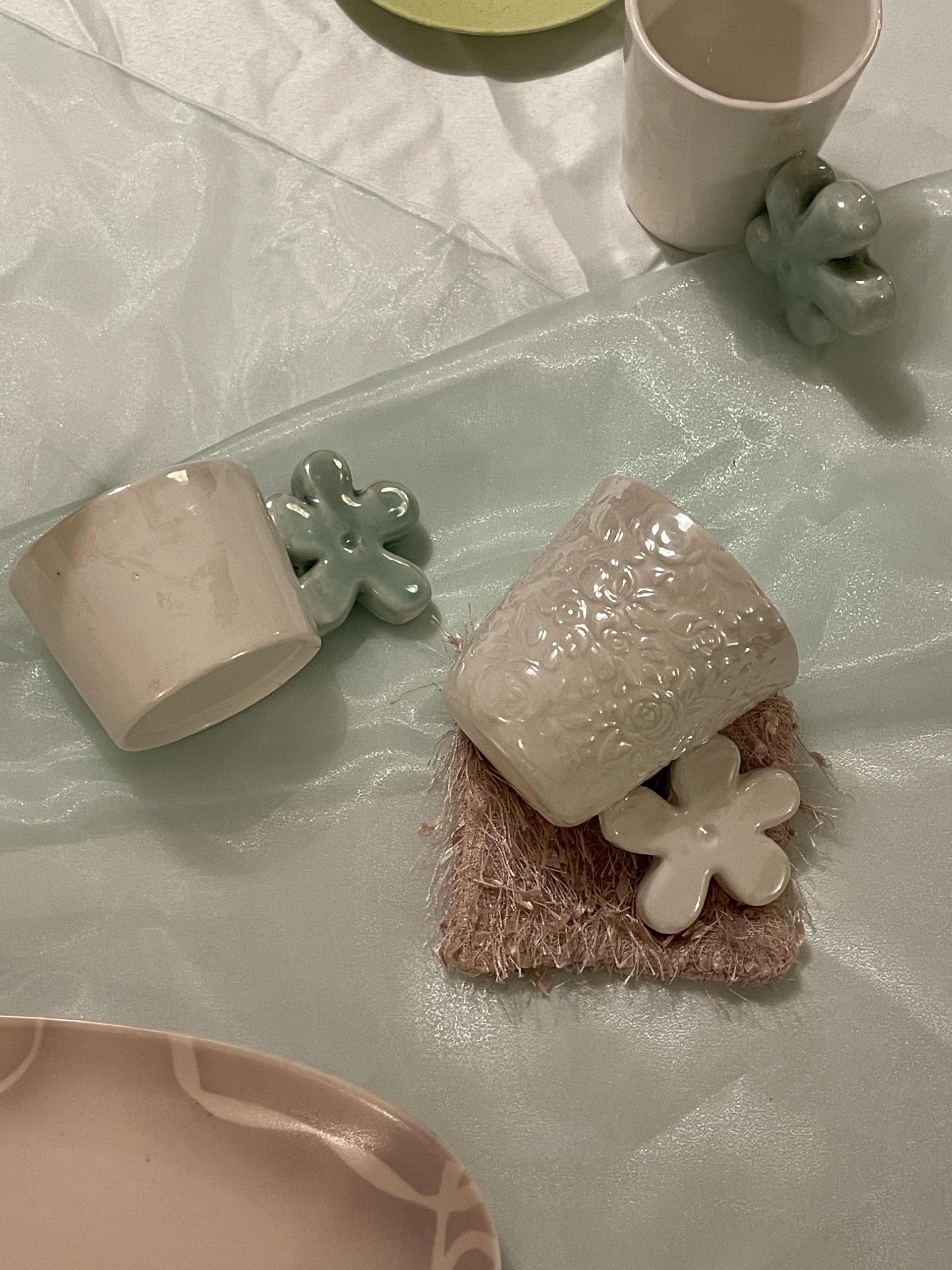 [viviflo] 로즈패턴 머그 글레이즈 화이트
