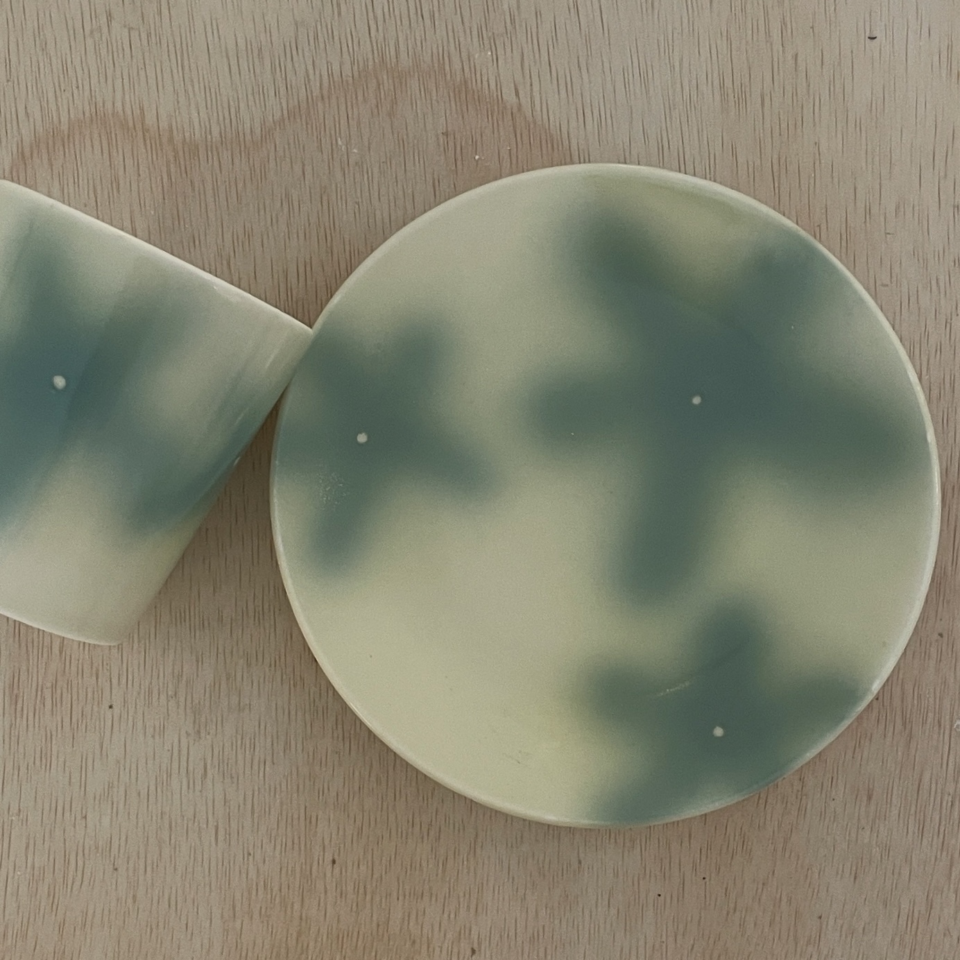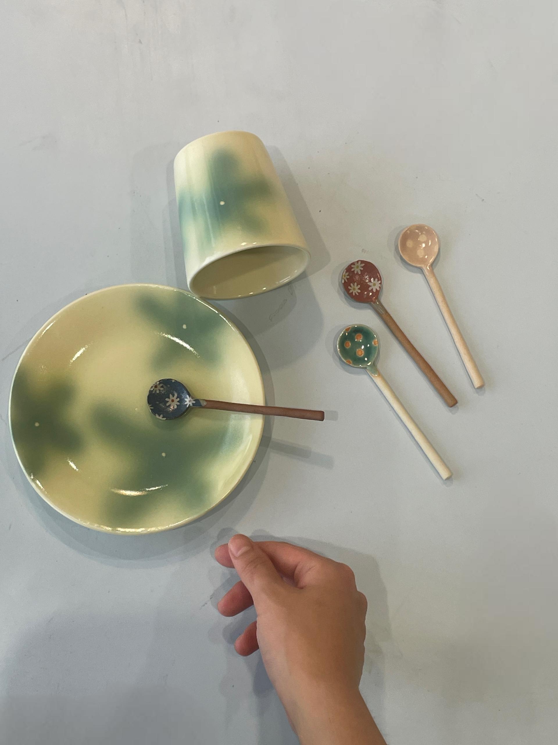 유약의 흐름이나 흙 내 철성분으로 인한 까만 반점 , 미새한 돌기 등이 느껴질 수 있으니 불량제품은 아니므로 교환이 어렵습니다